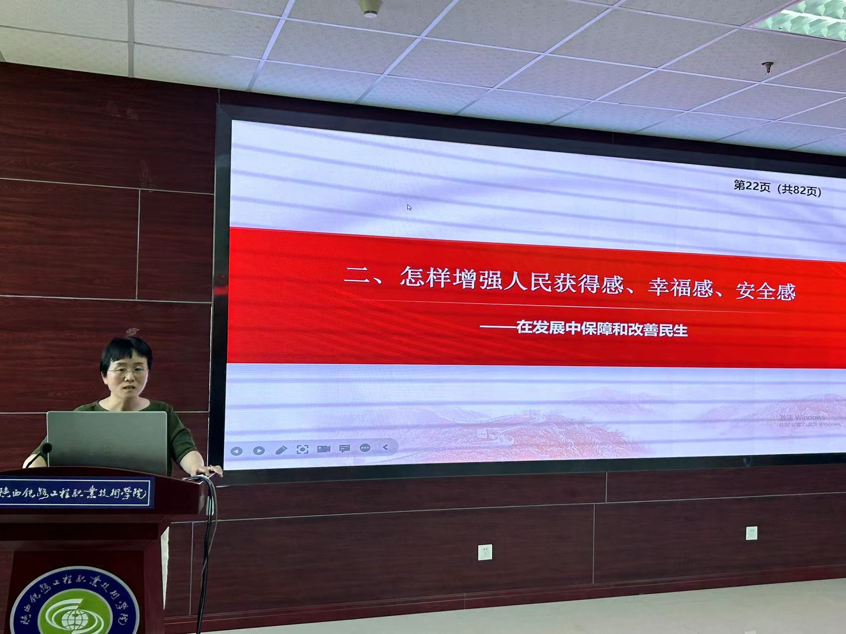 会议第二阶段进行主题教育讲党课专题活动。何文敏副经理以习近平新时代中国特色社会主义思想概论中“怎样增强人民获得感、幸福感、安全感”为题,从抓住人民最关心最直接最现实的利益问题、坚决打赢脱贫攻坚战、抗疫斗争最大限度保护人民生命安全和身体健康三方面全面阐述,在新时代的新征程上,牢记为党育人、为国育才使命,创新工作机制,打造文明校园,培育时代新人,进一步增强师生获得感幸福感安全感。(文|李炳良 图|李炳良)