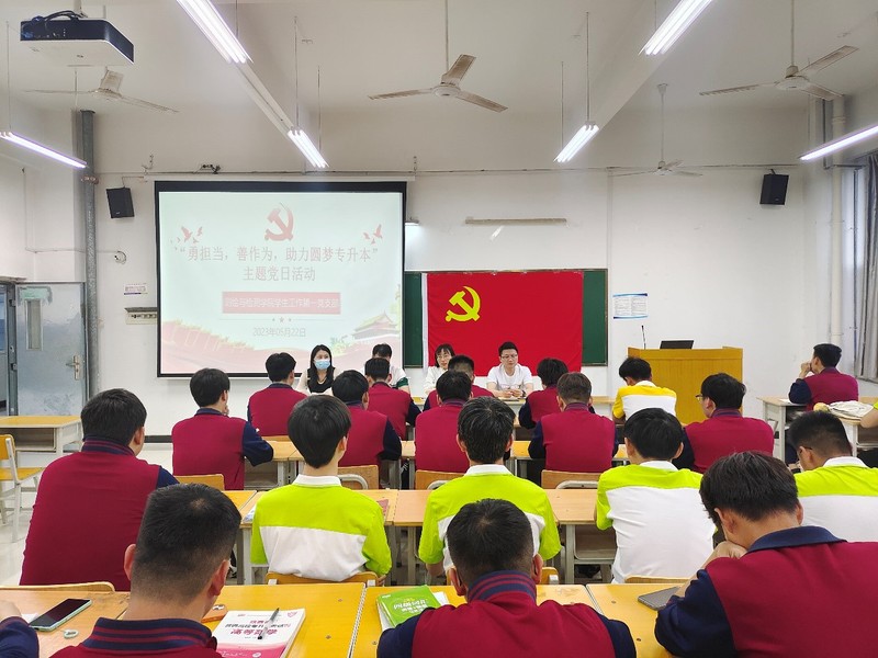为学习贯彻习近平新时代中国特色社会主义思想主题教育,践行“为党育人、为国育才”的初心使命,5月22日下午,k8凯发员工工作第一党支部在GB323开展“勇担当、善作为、助力圆梦专升本”主题党日活动,支部全体教师党员、预备党员和2024届部分有升学意愿的员工参加了活动。