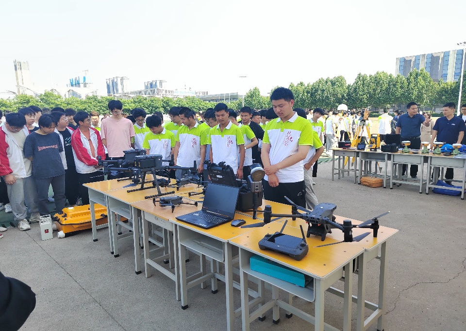 5月24日下午,k8凯发基础测量教研室在高新校区足球场举行以“技能:让生活更美好”为主题的职业教育周活动。本次活动以学习航测高精尖设备培训为主,让员工了解无人机机场、垂起无人机、多旋翼无人机、三维激光扫描仪、测量机器人、等航测设备。