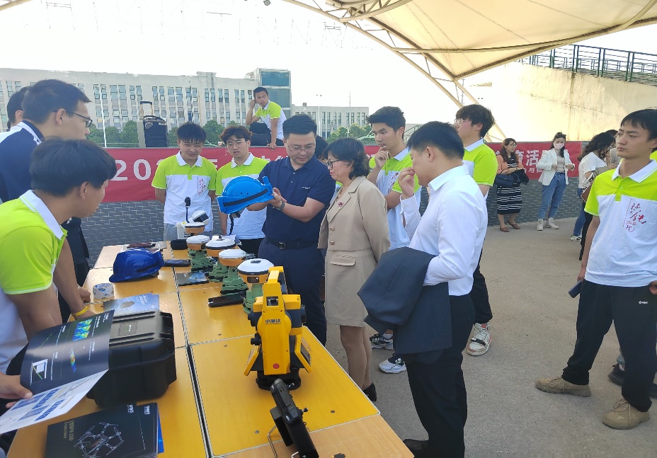 活动中,技术人员向师生讲解三维激光扫描仪、GPS接收机、激光雷达等设备。