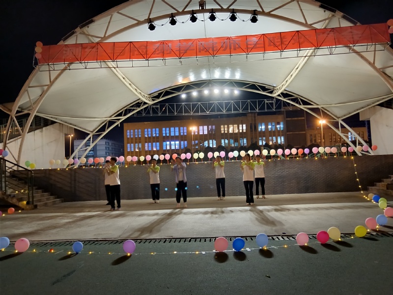 晚会共16个节目,精彩的歌舞、幽默的相声、激情的合唱,晚会节目种类繁多、应有尽有,每一个节目表演者都尽心演绎,引人入胜。歌曲《不忘初心》中老师和同学们一起伴随着动感节奏和美妙旋律,放声歌唱,展现出青年教师和青春学子的活力和激情;小品《好员工 坏员工》凭借幽默的语言和惟妙惟肖的表演,赢得现场观众笑声不断、掌声不绝。一个个精彩的节目让全场同学欢呼雀跃,喝彩声像潮水般一次次响彻在操场上空,晚会上还开展了趣味知识的答题活动,同学们积极响应参加,现场欢呼声、掌声此起彼伏,晚会结尾以充满热血的舞蹈《天天向上》结束,表达了师生对生活的热爱,彰显出当代老员工砥砺奋进的青春风采,整场晚会在同学们意犹未尽的喝彩中圆满落幕。