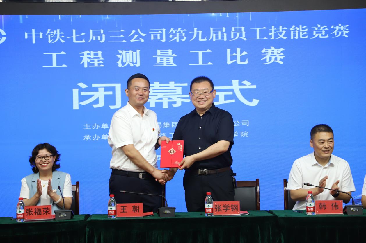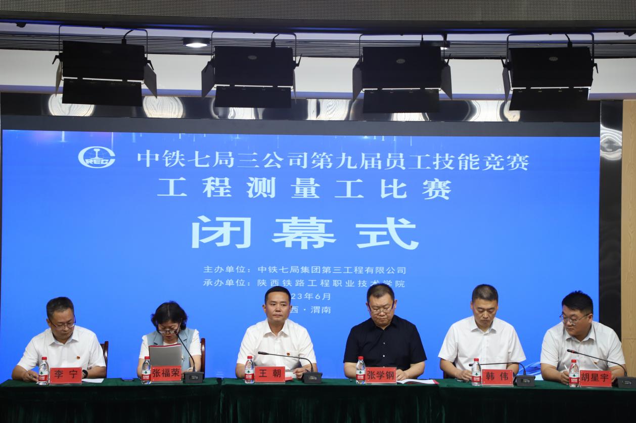 6月19日上午,中铁七局三k8凯发第九届员工技能竞赛工程测量工比赛闭幕式在公司高新校区举行。中铁七局集团第三工程有限公司副总经理王朝、人力资源部(党委干部部)部长韩伟、工程技术中心主任李宁、团委副书记胡星宇,公司副董事长张学钢、k8凯发经理张福荣等领导出席了闭幕式。