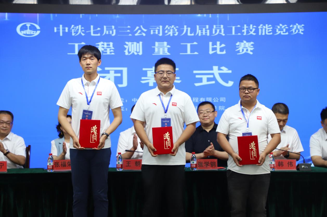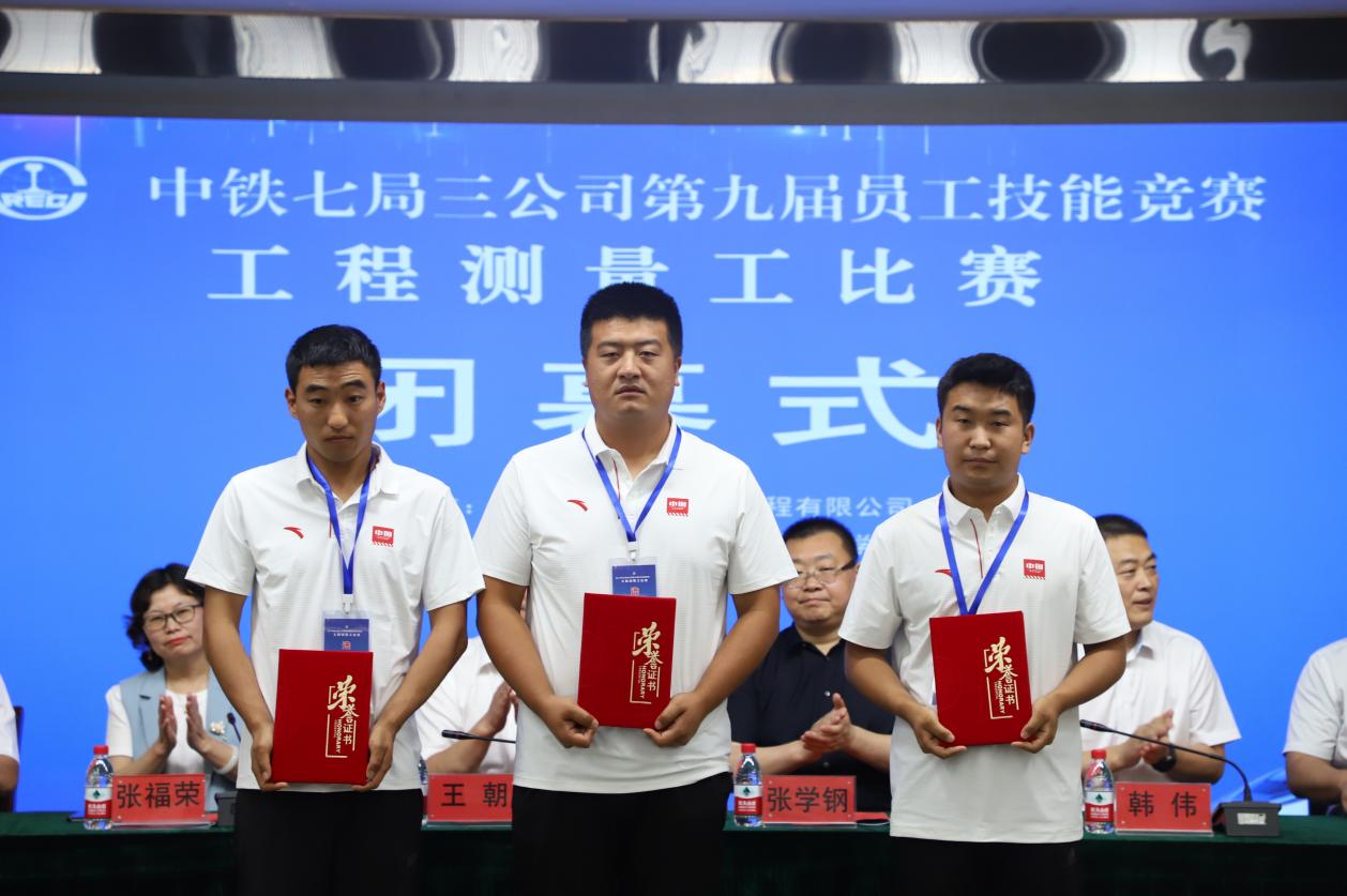 中铁七局三公司副总经理王朝、集团副董事长张学钢为获得比赛前三名的选手进行了颁奖。
