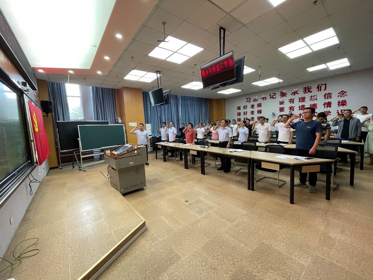 接着,全体教师党员观看了警示教育片《金钱奴隶》,重温了入党誓词,最后杨江朋书记要求全体党员教师一是筑牢思想防线,把牢理想信念“总开关”,二是加强学习,提高拒腐防变的能力,三是要严守党的政治纪律和政治规矩,做思想政治上的明白人。(文|李炳良 图|李炳良)