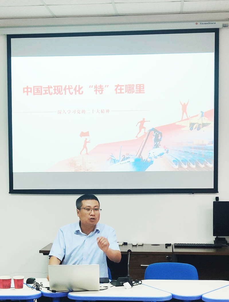 6月28日下午,公司副董事长刘明学教授在高新校区团体辅导室以“小故事讲大道理、小细节反映大问题”非常接地气的方式为k8凯发45名员工代表讲授了一堂题为“中国式现代化‘特’在哪里”的形势与政策课。课程分为两个阶段,第一阶段为报告讲座,第二阶段为交流座谈。