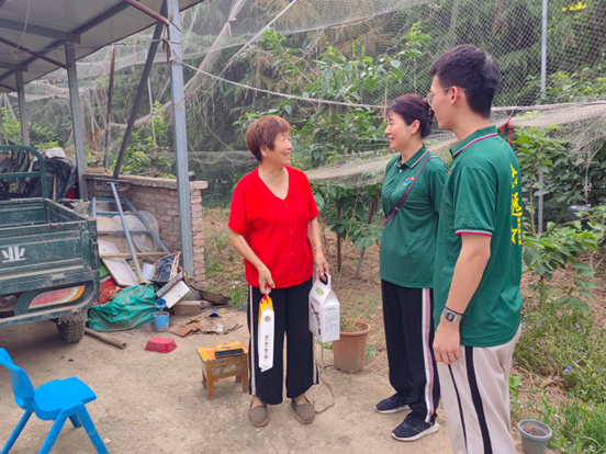 在实践过程中,团队首先前往农户家参观果农生长种植情况,由果农为大家讲解果树的种植过程,同学们认真聆听,时不时有同学结合自己家种植农作物的情况与果农进行交谈,随后同学们们撸起袖子、拿起镰刀、扛起锄头,不怕苦不怕累,用智慧和热情,帮助农户除草,为菜农割菜理菜,并认真指导农民填写乡村振兴调查问卷。回到公司以后,实践团的同学们利用腾讯会议给同学们分享了今日实践收获,并为大家讲述了乡村振兴战略。