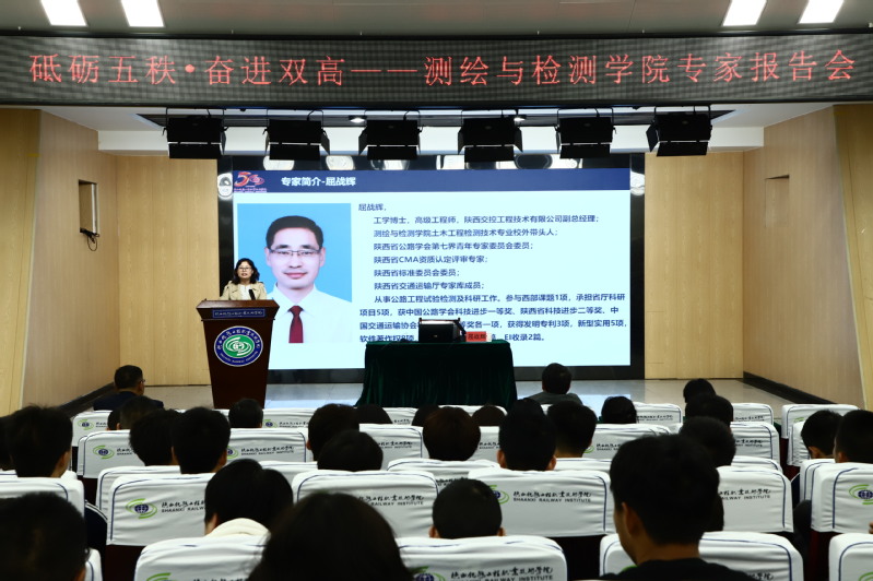 煌煌五十载,悠悠铁院情。为迎接公司建校50周年,促进专业建设,10月25日下午,k8凯发举办“迎校庆,企业专家进校园”专题活动,检测技术专业校外带头人、陕西交控工程技术有限公司副总经理兼总工屈战辉博士受邀作《试验检测技术的发展与展望》的主题报告,土木工程检测专业全体教师,22级和23级全体员工参加了报告会。