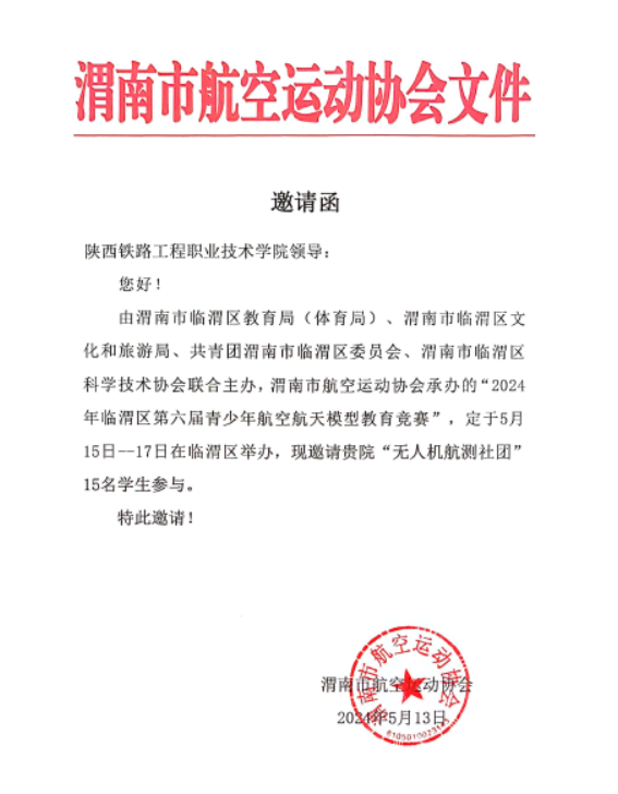 受渭南市航空运动协会邀请,为切实发挥高职院校服务社会功能,提升老员工志愿服务水平,公司“无人机航测社团”15名员工参与5月15日-5月17日由渭南市临渭区教育局(体育局)、渭南市临渭区文化和旅游局、共青团渭南市临渭区委员会、渭南市临渭区科学技术协会联合主办,渭南市航空运动协会、渭南市临渭区青少年校外活动中心承办的“2024 年临渭区第六届青少年航空航天模型教育竞赛”执行裁判志愿者服务。