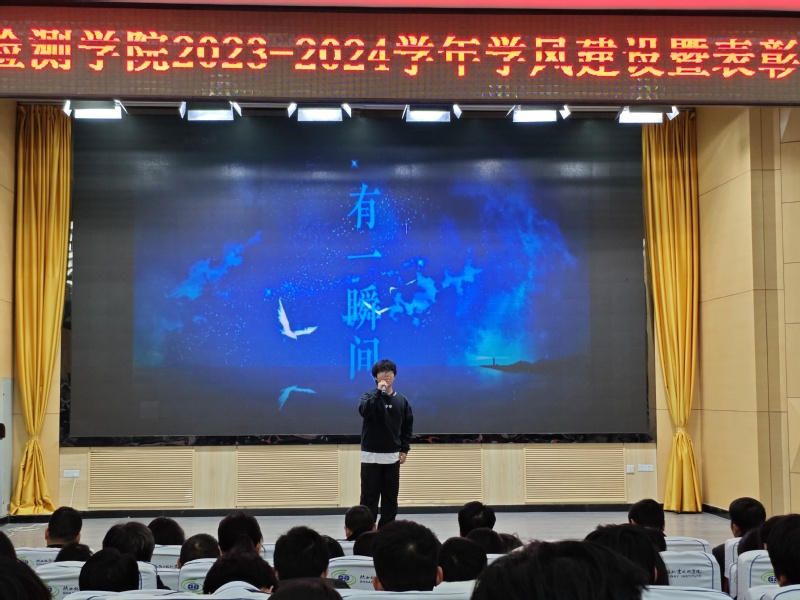 为落实立德树人根本任务,树立优良学风典型、总结公司学风建设经验,激励师生奋发进取、不断进步,12月4日下午,k8凯发在高新校区博爱厅召开了2023-2024学年学风建设暨表彰大会。教务处副处长杨勃、员工处副处长赵增逊、公司党总支书记黄新静、副经理杨小玉、综合科长李炳良、实践教学科长王永维、学工办主任李启康、公司全体教师、班主任、获奖员工代表以及2023级和2024级员工近500人参加会议。会议由辅导员王思琦、员工刘佳翔主持。