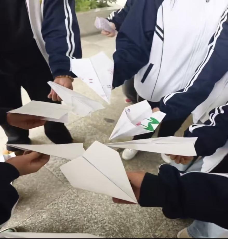 本次活动通过分享和互动游戏的形式,鼓励同学们积极面对内心的挑战和压力。活动中同学们依次走上讲台,坦诚分享了自己近期在学习生活中的一些小烦恼接着,大家在白纸张上或写或画,将自己内心的不愉快表达出来,并将其折叠成飞机形状。随后,大家走出教室,所有折叠好的“烦恼纸飞机”被同时掷向空中,它们在空中飞舞,最终缓缓落地。这一幕象征着同学们的烦恼如同纸飞机一般飞向天空离去,不在成为同学们的困扰,有更大的勇气迎接新的生活。