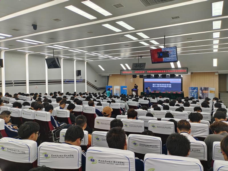 4月9日下午,华测导航西安分公司技术团队应邀来访,为测绘公司300余名师生在高新校区诚信厅带来一场以“探索智能测绘 ,点亮科技未来”为主题的深度分享。本次活动由公司学工办主任李启康主持,测绘公司党总支书记黄新静及各专业骨干教师出席,通过校企深度交流,搭建起行业前沿技术与高校人才培养的对接桥梁。
