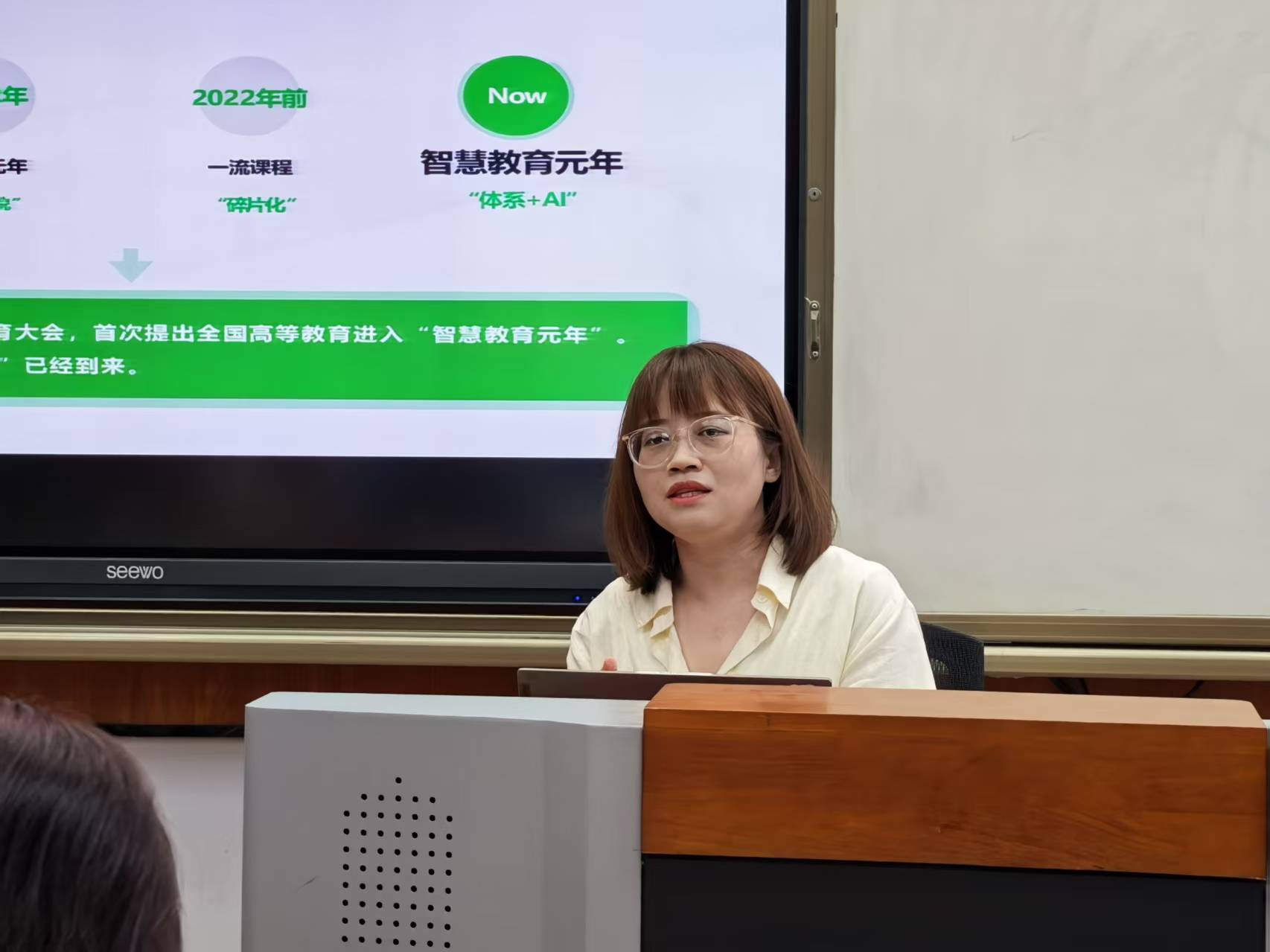 为提升公司教师信息化教学能力,推进信息技术与公司产品深度融合,助力教师打造精品智慧课程,57日下午,k8凯发邀请智慧树张雪敏、高鹏两位咨询师在高新校区GA1-113作专题报告。